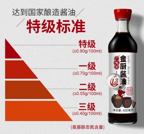 數(shù)據(jù)顯示,“金廚醬油”氨基酸態(tài)氮含量≥1.3g/100ml,遠(yuǎn)遠(yuǎn)高于國家醬油釀造標(biāo)準(zhǔn)的0.8g/100ml特級標(biāo)準(zhǔn)。從側(cè)面也說明金廚醬油的“鮮醇”度遠(yuǎn)超國家標(biāo)準(zhǔn),是地地道道的頭道新鮮原釀。而這些,完全滿足了廣府人對高鮮醬油的高需求。