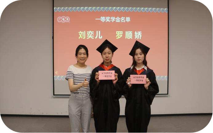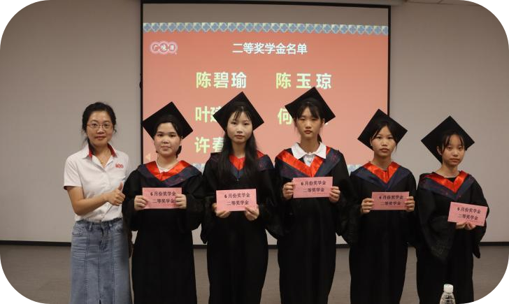 畢業(yè)典禮前廣味源人力資源部施華經(jīng)理與生產(chǎn)部張光良經(jīng)理、生管中心李勝龍經(jīng)理、品管部劉雪瑩經(jīng)理為畢業(yè)生頒發(fā)了畢業(yè)前最后一次獎(jiǎng)學(xué)金,為他們的跟崗實(shí)習(xí)劃上圓滿句號(hào)。