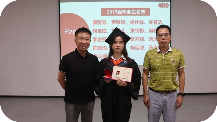 許總經(jīng)理、林主任為2019級(jí)畢業(yè)生代表頒發(fā)畢業(yè)證書及勛章