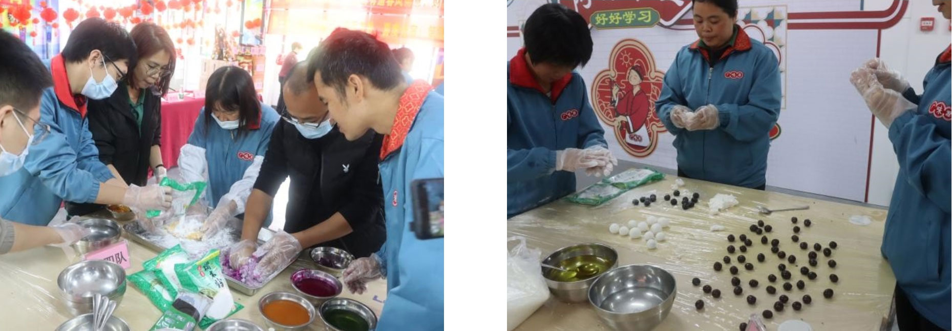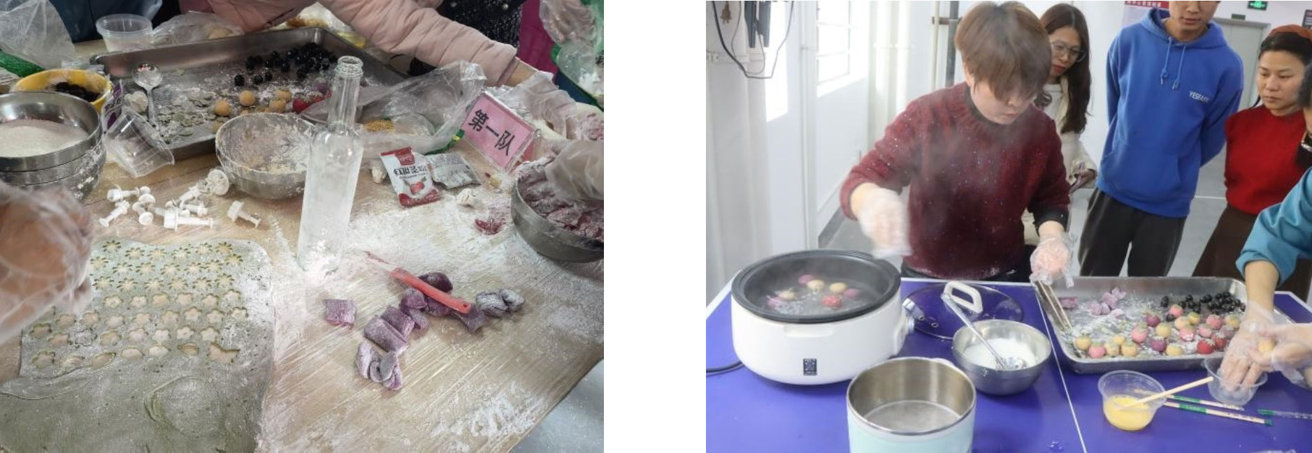 隨后主持人介紹出席活動(dòng)的評(píng)委及詳細(xì)介活動(dòng)的規(guī)則。接著各小組成員迫不及待想地投入到熱烈的DIY湯圓制作比賽中,每個(gè)參賽小組成員都各司其職,有的煮開(kāi)水,有的搓粉,有的倒水,有的搓餡料,有的煮湯圓,場(chǎng)面熱鬧非凡,隊(duì)員們忙得不亦樂(lè)乎,湯圓制作比賽不僅是一場(chǎng)比賽,更是一場(chǎng)團(tuán)聚和交流,隊(duì)員們?cè)诒荣惖倪^(guò)程中,相互學(xué)習(xí)、分享經(jīng)驗(yàn)和技巧,其樂(lè)融融、笑聲不斷。