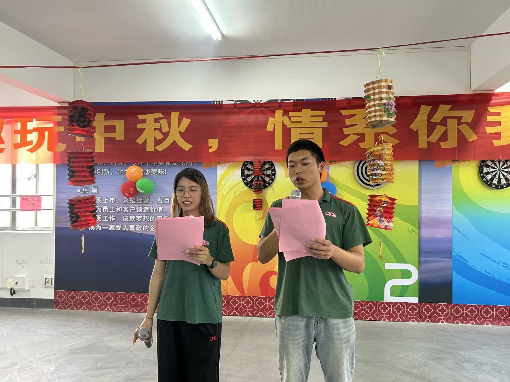 15:00分,活動(dòng)在主持人(楊正林、何楚宜)熱情洋溢的開場白中正式拉開帷幕。行政部施華經(jīng)理上臺(tái)致辭,向全體員工及家屬致以節(jié)日的誠摯祝福。她表示,中秋象征著團(tuán)圓與豐收,希望通過今天的游園活動(dòng),讓大家在歡樂的氛圍中感受傳統(tǒng)文化魅力,增進(jìn)彼此情誼,共同祝愿廣味源這個(gè)大家庭越來越好。